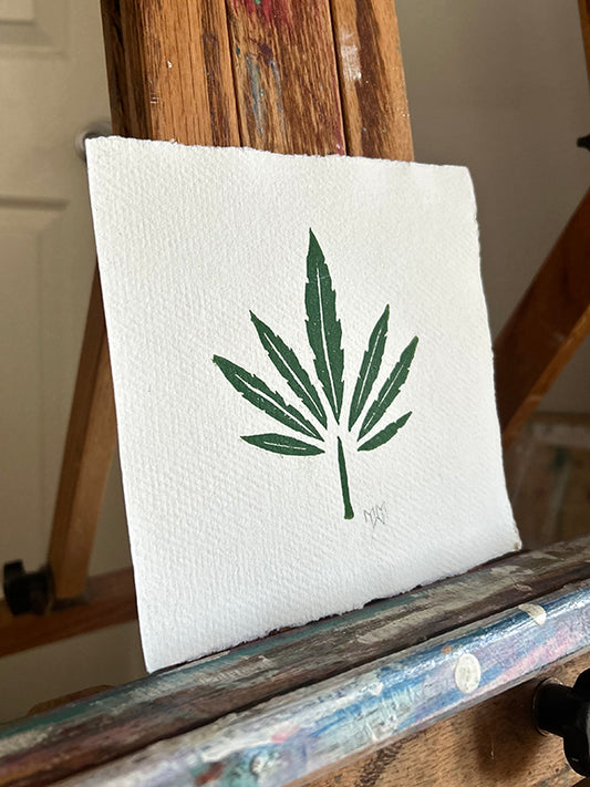 Cannabis Leaf in Green - Original Hand Pulled Linocut Print