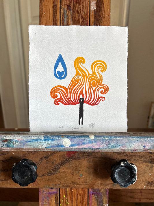 Spark - Original Hand Pulled Linocut Print in COLOR
