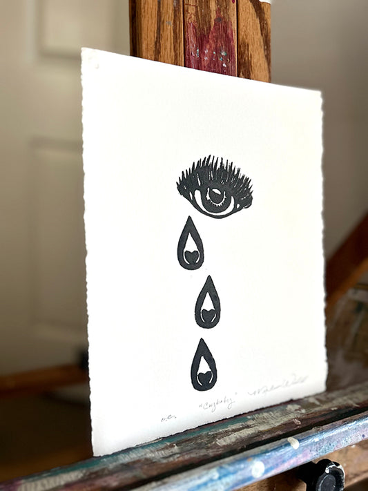 Tears that Care 3 - Original Hand Pulled Linocut Print
