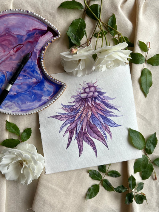 Purple Cannabis Flower 2 Original Watercolor Painting 10x10"