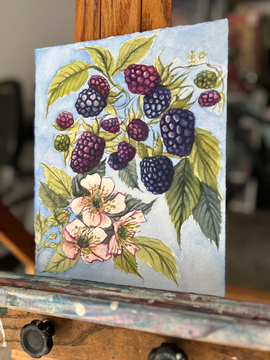 Wild Summer Blackberries Original Watercolor Painting 8x10"
