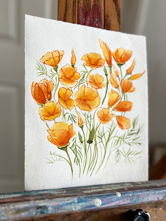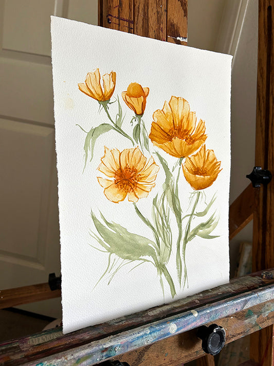 Golden Poppies 2 Original Watercolor Painting - 8X10"