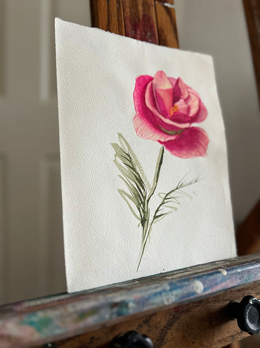 Pink California Poppy Original Watercolor Painting - 8x10"