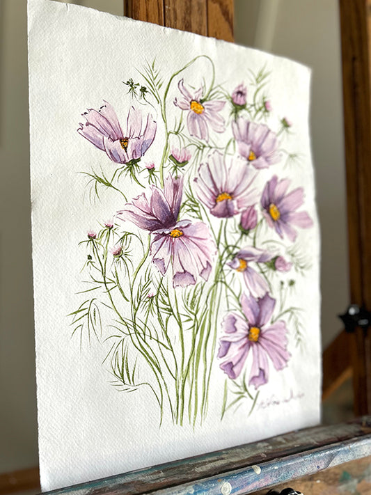 Lilac Cosmos Original Watercolor Painting - 11x15"