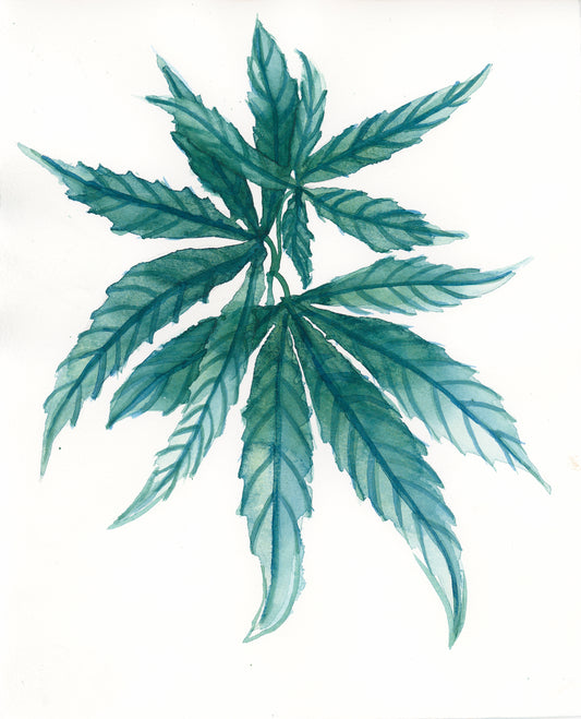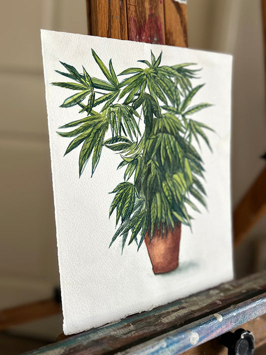 Cannabis Plant in Terracotta Pot Original Watercolor Painting 8x10"
