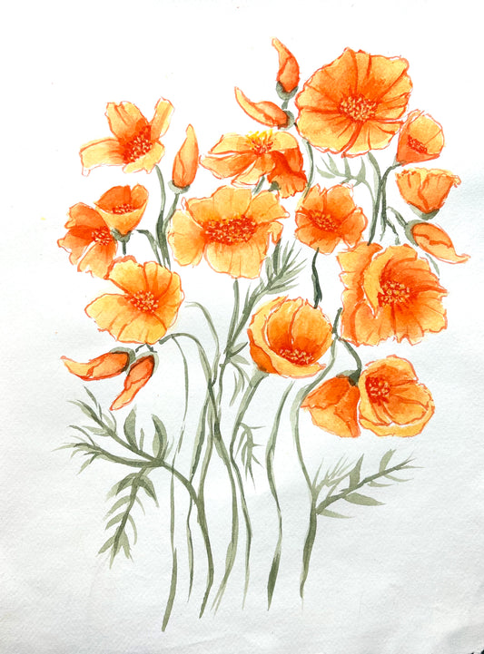 Golden Poppies 1 Original Watercolor Painting - 11x15"