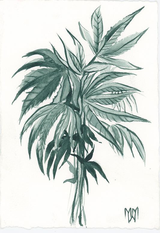 Flowering Cannabis Original Watercolor Painting 8x10"