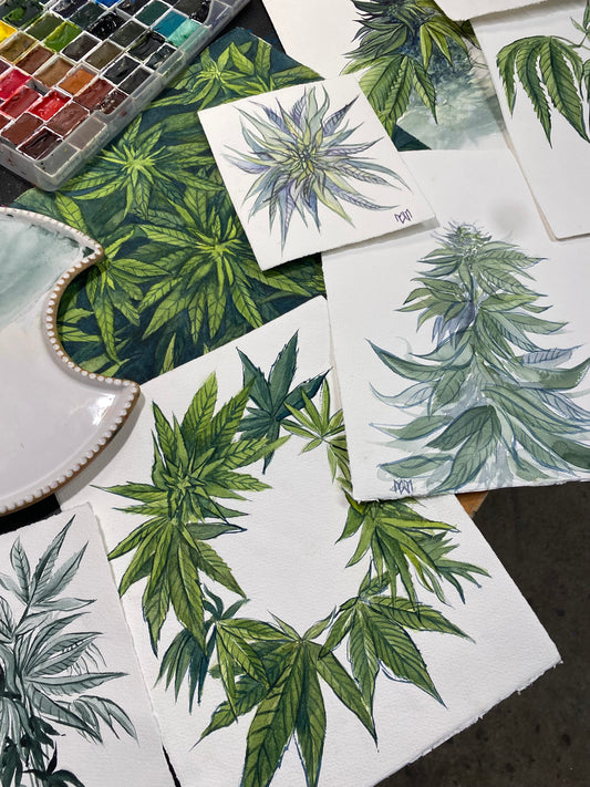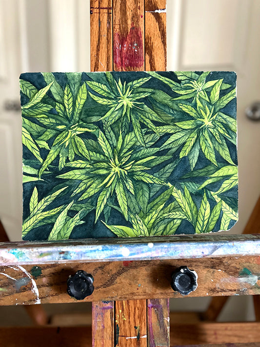 Cannabis Bouquet Original Watercolor Painting 5x7"