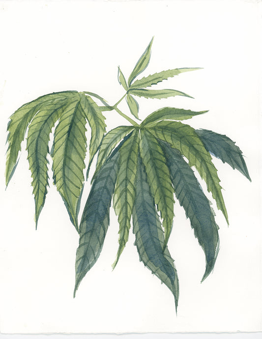 Cannabis Plant Original Botanical Watercolor Painting 8x10"